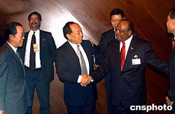 當(dāng)?shù)貢r間九月二十八日,正在紐約聯(lián)合國總部出席第五十九屆聯(lián)大的中國外長李肇星,會見了巴布亞新幾內(nèi)亞外長納馬柳(右一)。作者:趙海燕