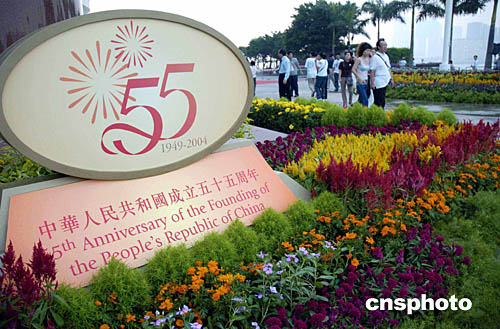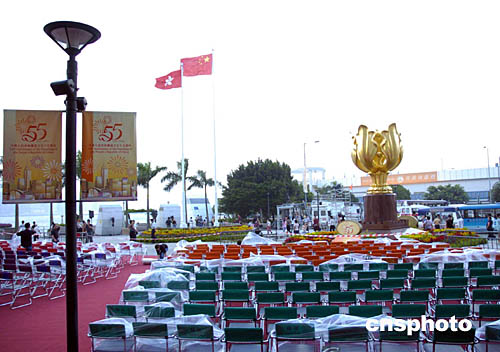 為慶祝中華人民共和國(guó)成立五十五周年,香港金紫荊廣場(chǎng)10月1日將舉行隆重升旗儀式。作者:洪少葵