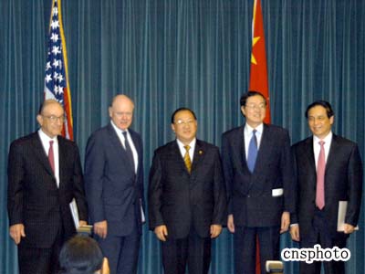 中美經(jīng)濟(jì)聯(lián)委會(huì)第十六屆會(huì)議當(dāng)天在此間召開。中國財(cái)政部長金人慶與美國財(cái)長斯諾共同主持了會(huì)議。中國人民銀行行長周小川、中國銀監(jiān)會(huì)主席劉明康、美聯(lián)儲(chǔ)主席格林斯潘、美國財(cái)政部副部長泰勒等財(cái)金高官出席了會(huì)議。