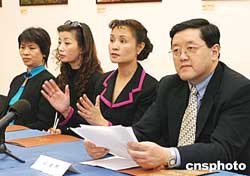 被稱為世界服裝之都的紐約,二○○四年十二月將由華人首次主辦模特選拔賽,比賽名為“美麗人生”。圖為選拔賽召集人艾冰(右二)與紐約華人總商會會長劉建邦(右)等向新聞界發(fā)布消息。據(jù)悉,在世貿(mào)組織有關紡織品配額開放后,這次比賽將給新銳服裝設計師和華人服裝廠商提供施展拳腳的機會。作者:龔文謨