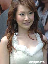 香港歌星關(guān)心妍3日出席香港賽馬會(huì)在沙田賽馬場舉辦的慶祝中華人民共和國成立五十五周年國慶同歡嘉年華活動(dòng)。作者:趙振清