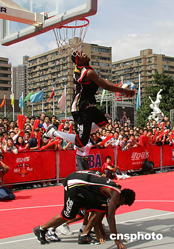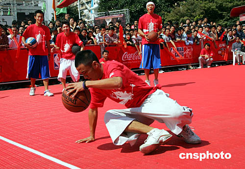 十月五日,“二零零四可口可樂NBA嘉年華”在上海體育館舉行,并推出灌籃斗秀、定點(diǎn)投籃挑戰(zhàn)賽、三分球比賽等活動(dòng),讓上海市民和籃球迷們?cè)趪鴳c黃金周中免費(fèi)體驗(yàn)NBA籃球激情。作者:潘索菲