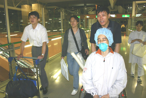 10月5日晚上8點(diǎn)半,救護(hù)車載著病人到了關(guān)西空港,趙大為領(lǐng)事和劉政領(lǐng)事親自推著輪椅向登記口走去,中國(guó)東方航空公司大阪支店長(zhǎng)黃青平得知這一情況后,立即免費(fèi)把病人安排到頭等艙,中國(guó)駐大阪總領(lǐng)事邱國(guó)洪在病人登機(jī)前通過電話向他表示了問候,9點(diǎn)鐘飛機(jī)載著病人飛向了祖國(guó)。(記者叢中笑)