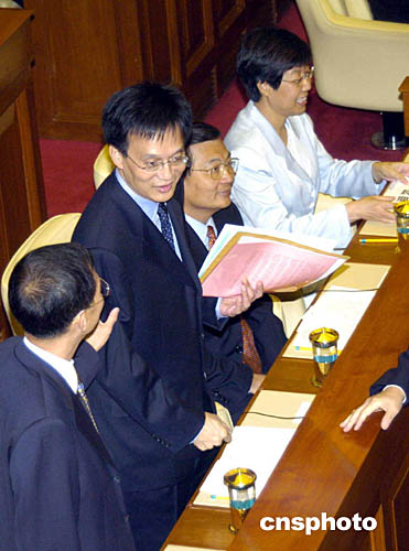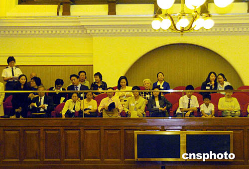 備受爭議、外號(hào)“長毛”的議員梁國雄,身穿黑色短袖圓領(lǐng)T恤,先高呼口號(hào),然后再按原定的誓詞宣誓。但他并未在誓詞上簽署便返回座位。有議員對(duì)此提出異議,立法會(huì)秘書長馮載祥表示,法律沒有規(guī)定議員宣誓后要在誓詞上簽名,議員簽名只是一貫的做法。