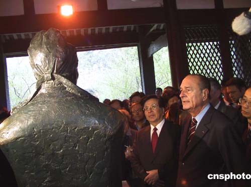 在希拉克總統(tǒng)眼里,杜甫是他很喜歡的“偉大的人民詩人”。短短的一小時里,希拉克總統(tǒng)沿著古意十足、林木幽美的草堂故徑緩緩前行,與這位“偉大的人民詩人”進(jìn)行著跨越時空的交流,其情其景,讓人遐思不已。