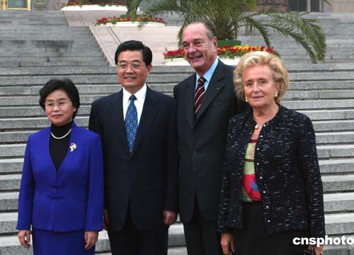 胡錦濤和夫人歡迎希拉克夫婦訪華。中新社記者:滿會(huì)喬