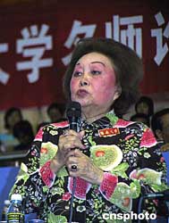 著名美籍華裔陳香梅女士十月九日在?谑芷笧楹D洗髮W名譽校長。圖為陳香梅女士今天下午在海南大學聯(lián)誼館舉行中美關(guān)系回顧與展望的學術(shù)報告會。作者:王辛莉