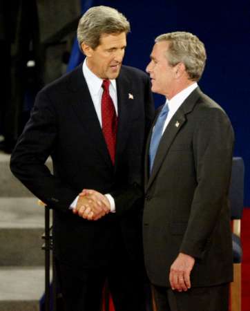 克里不時以對布什的批評來刺激對手,布什則以一副不形于色的冷靜表情,來壓制內(nèi)心的怒火。
