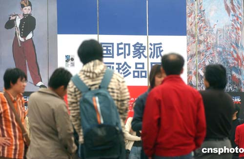 十月十日,“法國印象派珍品展”在北京中國美術(shù)館開幕,展品匯集了法國印象派代表人物莫奈、馬奈等大師的五十一幅原作,成為中法文化年中最重要的展事之一。據(jù)悉,由于展品屬于法國國家的藏品,保險(xiǎn)金額高達(dá)五億歐元。