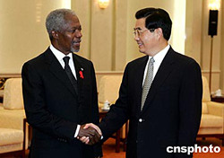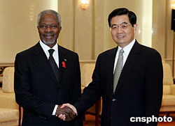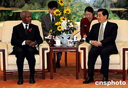 組圖:胡錦濤會見聯(lián)合國秘書長安南