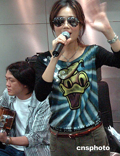 香港歌星容祖兒,十月十三日在來到九龍國際展貿(mào)中心,進(jìn)行《MTV亞洲之聲--容祖兒》彩排,并接受傳媒訪問。中新社記者:錢興強(qiáng)