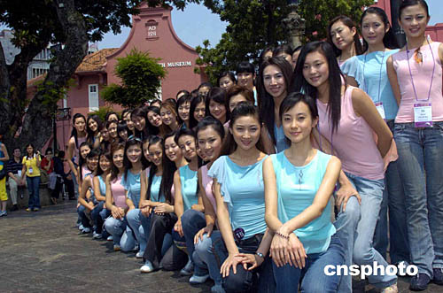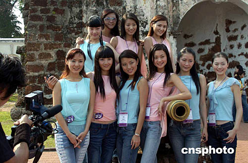 參加鳳凰衛(wèi)視舉辦的“2004中華小姐環(huán)球大賽”的佳麗程婉茹,10月14日在馬來西亞展開親善及觀光活動時親近大蟒蛇毫無懼色。