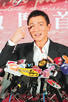 劉德華出席儀式后,即時(shí)滿頭大汗。問到他是否因?yàn)镾ammi太低胸?他笑指對(duì)方件衫真是好V,自己都不禁望多兩眼;但他反而更留意Sammi將頭發(fā)染成黑色,十分好看。