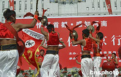 十月十五日,中原地區(qū)的“威風(fēng)鑼鼓”在北京西單文化廣場敲響,拉開“情系北京.感知河南--中原文化北京行”活動(dòng)的序幕。中新社記者:史利
