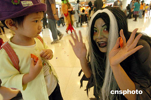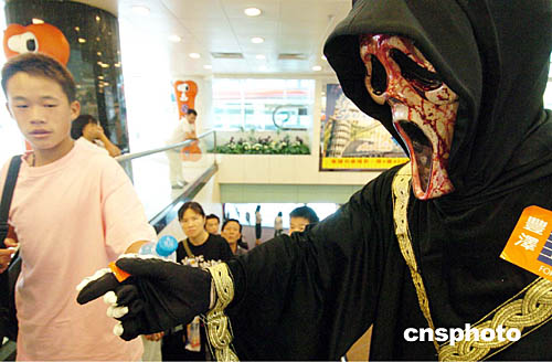 萬圣節(jié)即將來臨,香港商城開始拉開萬圣節(jié)序幕,十月十五日在沙田新城廣場(chǎng),商家推出別開生面的萬圣節(jié)商品促銷活動(dòng)。作者:錢興強(qiáng)