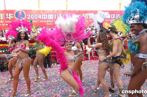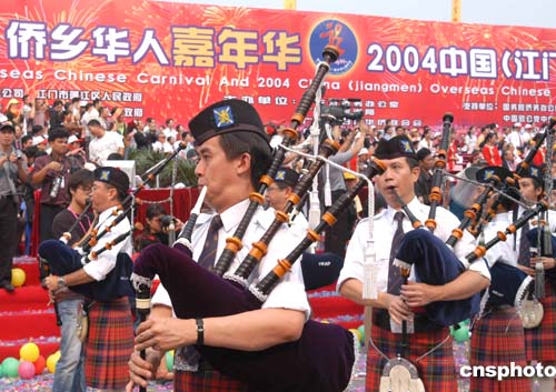 中新社江門(mén)十月十七日電(記者邢利宇)今天上午,彩旗、彩球、花車(chē)、巡游表演隊(duì)把廣東江門(mén)市東湖廣場(chǎng)裝扮一新,來(lái)自世界各地的華僑華人、港澳同胞及內(nèi)地各界嘉賓兩千多人歡聚于此,“中國(guó)(江門(mén))僑鄉(xiāng)華人嘉年華暨二OO四中國(guó)(江門(mén))僑鄉(xiāng)旅游節(jié)”在熱烈的氣氛中隆重開(kāi)幕。