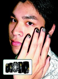 中新網(wǎng)10月18日電 男生戴耳環(huán)、配發(fā)飾早不稀奇,穿著粉色上衣的“粉紅男孩”更是當(dāng)前街頭流行;而近年來讓許多年輕美眉趨之若鶩的指甲彩繪,最近也在島內(nèi)吹起男兒風(fēng),爭酷比炫較女生的美甲更為搶眼。