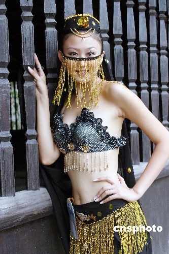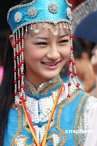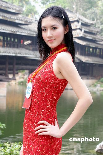 2004年10月17日,中國(guó)模特之星全國(guó)20個(gè)分賽區(qū)前三名的60名選手在南寧民族文物苑進(jìn)行民族裝外景拍攝。駱文剛 攝