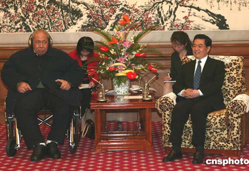 中新社北京十月十八日電(記者齊彬)中國國家主席胡錦濤今天下午在會見湯加國王圖普四世時(shí)表示,我們贊賞圖普四世國王為實(shí)現(xiàn)中湯關(guān)系正常化作出的重要貢獻(xiàn),感謝湯加堅(jiān)持一個(gè)中國政策、支持中國在臺灣問題上的正義立場。
