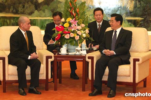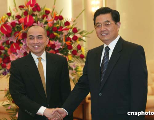圖:胡錦濤會見柬埔寨新國王諾羅敦·西哈莫尼