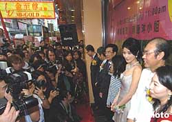 香港歌影紅星陳慧琳23日擔任剪彩嘉賓出席香港金至尊珠寶北角分店開幕典禮。作者:趙振清