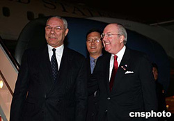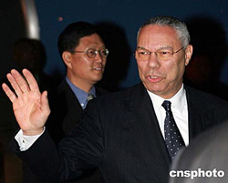 美國國務(wù)卿鮑威爾抵京開始訪華