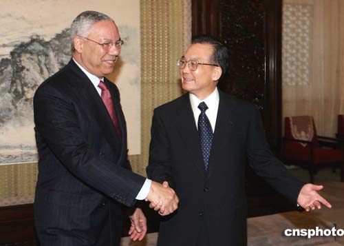 鮑威爾表示,很高興再次訪(fǎng)問(wèn)北京。他對(duì)溫家寶訪(fǎng)問(wèn)美國(guó)記憶猶新。在那次訪(fǎng)問(wèn)期間,布什總統(tǒng)重新確認(rèn)了一個(gè)中國(guó)的政策。