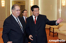 全國(guó)政協(xié)主席賈慶林,十月二十五日在北京人民大會(huì)堂會(huì)見(jiàn)葡萄牙議會(huì)外交與歐洲事務(wù)委員會(huì)主席雅伊梅·伽瑪率領(lǐng)的葡萄牙議會(huì)外委會(huì)代表團(tuán)。中新社記者:毛建軍