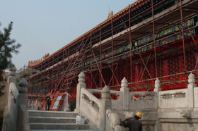 晉宏逵:對(duì)于1400名施工人員,一是對(duì)這些工人尤其是工長(zhǎng)及他們的負(fù)責(zé)人,在進(jìn)入故宮之前都進(jìn)行培訓(xùn),我們叫做持證上崗。二是能夠進(jìn)入故宮的單位都是經(jīng)過(guò)招標(biāo)的,它們都擁有國(guó)家文物局頒發(fā)的一級(jí)文物建筑維修施工和設(shè)計(jì)證書(shū)。三是故宮和施工單位一起制定了一整套現(xiàn)場(chǎng)管理措施,包括人員、技術(shù)、材料進(jìn)出廠(chǎng)的管理等。通過(guò)這些管理手段來(lái)保證故宮維修的安全。四是施工單位都是利用傳統(tǒng)方法來(lái)進(jìn)行施工的,能夠保證維修工作不改變建筑原狀。另外從技術(shù)措施上,我們也想了很多辦法。比如說(shuō)對(duì)比較重要的墻,他們對(duì)每一塊磚都做了編號(hào)。在這些建筑隊(duì)伍進(jìn)場(chǎng)之前,我們已經(jīng)也做了充分的考慮,不僅僅要保證建筑的安全,還要保證游客的安全,因?yàn)槲覀兊木S修是在不關(guān)閉多個(gè)館的情況下進(jìn)行的,我們劃定了比較嚴(yán)格的區(qū)域進(jìn)行管理。施工工人只在上班時(shí)進(jìn)入故宮,不能在故宮居住。