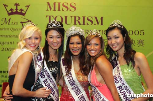 | 由中國全國工商聯(lián)旅游業(yè)商會主辦的二零零五年國際旅游小姐冠軍總決賽新聞發(fā)布會十月三十一日在北京舉行,獲得二零零四年國際旅游小姐總決賽前三名的選手(左三印度小姐ZABINAABDULRASHIDKHAN、左四德國小姐JOHNALENAKWASOW、左二中國小姐鈔俊男)等美女亮相人民大會堂,為開始啟動(dòng)的二零零五年國際旅游小姐大賽助興。作者:毛建軍