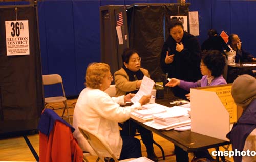 紐約州的選舉站都有懂華語、韓語、西班牙語的工作人員為少數(shù)族裔選民提供幫助。作者:趙海燕