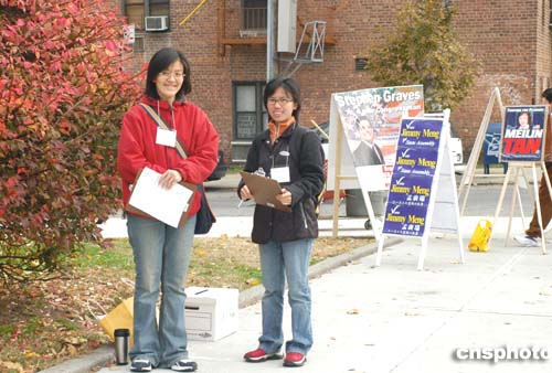今年美國大選競爭激烈,競選團隊也毫不松勁。美東時間十一月二日大選日清晨,紐約市亞裔移民聚居區(qū)法拉盛的投票站外,助選人員照!罢緧彙,企圖在最后時刻“拉攏”選民投票給自己助選的一方。作者:龔文謨