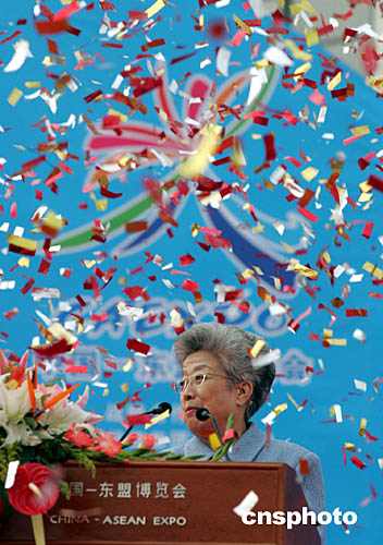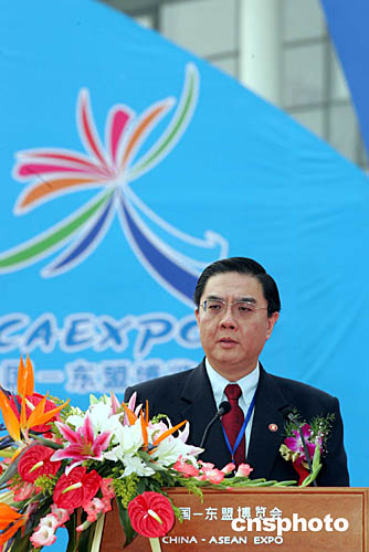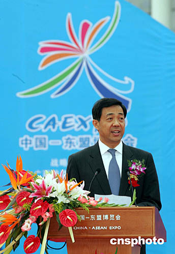 圖為中國商務部長薄熙來在中國-東盟博覽會開幕式上致辭。