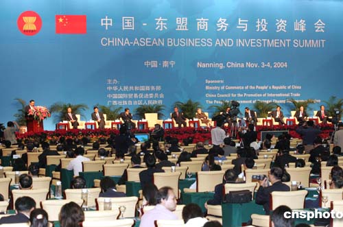 十一月三日,以“促進(jìn)互利合作、謀求共同發(fā)展”為主題的首屆中國(guó)—東盟商務(wù)與投資峰會(huì)在廣西南寧開幕,中國(guó)國(guó)務(wù)院副總理吳儀、柬埔寨首相洪森、老撾總理本揚(yáng)·沃拉吉、緬甸總理梭溫、泰國(guó)副總理披尼·差魯頌巴、越南副總理范學(xué)謙等出席峰會(huì)開幕式并就本國(guó)政策、區(qū)域發(fā)展等問(wèn)題做主題演講。