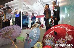十一月四日,在廣西南寧舉行的首屆中國—東盟博覽會上,參觀者為泰國展臺前的民間藝術(shù)“傘繪”所吸引。展示本國、本民族的民間藝術(shù)成為本次展會的一大亮點(diǎn)。作者:武仲林