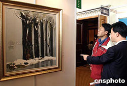 在十一月七日舉行的嘉德二零零四秋季拍賣會(huì)上,著名畫家吳冠中創(chuàng)作于二十世紀(jì)七十年代的油畫作品《北京雪》以三百六十三萬元人民幣的高價(jià)成交,成為此次嘉德中國油畫專場拍賣會(huì)的最高成交價(jià)作品。吳冠中的作品具有很高的藝術(shù)欣賞和收藏價(jià)值,并多次創(chuàng)造拍賣紀(jì)錄。圖為《北京雪》在預(yù)展時(shí)備受矚目。中新社記者:張煒