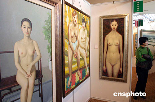| 十一月七日,中國嘉德二零零四秋季拍賣會舉行中國油畫及雕塑專場拍賣,創(chuàng)下總成交三千七百余萬元人民幣的單場中國油畫拍賣成交紀(jì)錄。中國油畫的收藏與拍賣正在升溫,拍賣成交價格逐年攀升,其投資價值受到越來越多投資者的重視。圖為拍賣預(yù)展會上的中國油畫作品。中新社記者:張煒