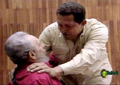 新聞報(bào)道稱,卡斯特羅與查維斯在上星期六晚上舉行了八個(gè)小時(shí)的會(huì)談。電視臺(tái)的畫面顯示,卡斯特坐在輪椅上,他的腿打了石膏,胳膊也用懸?guī)У踔?/p>