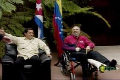 報(bào)道稱,卡斯特羅與查韋斯在上星期六晚上舉行了長(zhǎng)達(dá)八個(gè)小時(shí)的會(huì)談——這對(duì)于一個(gè)已經(jīng)78歲高齡的老人來(lái)說非常不易,考慮到他還剛剛摔了一跤,就更有點(diǎn)難能可貴了。電視臺(tái)的畫面顯示,卡斯特羅坐在輪椅上,腿打了石膏,胳膊也用吊帶吊在脖子上。此前,卡斯特羅在不慎摔倒后只在電視上出現(xiàn)過一次。當(dāng)時(shí)電視臺(tái)只播出他胸部以上部分的鏡頭。