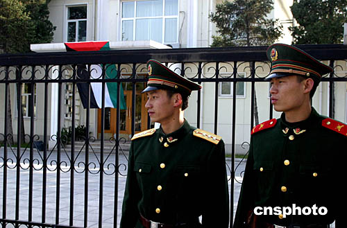 圖:阿拉法特逝世后巴駐華使館加強(qiáng)戒備