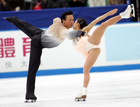 中國(guó)另一對(duì)組合、在美國(guó)站大獎(jiǎng)賽上一鳴驚人奪得自己首個(gè)大獎(jiǎng)賽冠軍的張丹、張昊,今天也穩(wěn)定發(fā)揮,排在第二位。盡管“功力”還沒(méi)有達(dá)到申雪、趙宏博那般爐火純青,但兩人最近問(wèn)鼎世界冠軍也標(biāo)志著中國(guó)雙人滑已經(jīng)有了集團(tuán)作戰(zhàn)的實(shí)力,加上去年世青賽亞軍獲得者丁楊、任重飛的助陣,應(yīng)該說(shuō)明天中國(guó)隊(duì)奪取這枚金牌的保險(xiǎn)系數(shù)很高。
