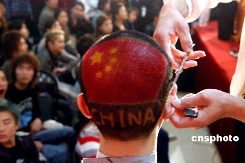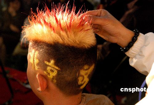 11月11日,第六屆江蘇省美容美發(fā)美甲大賽在江蘇展覽館開(kāi)幕,各式時(shí)尚、新奇的發(fā)型讓觀眾大飽眼福,其中以2008中國(guó)奧運(yùn)為主題而設(shè)計(jì)的兩款發(fā)型十分引人注目。阿董 攝