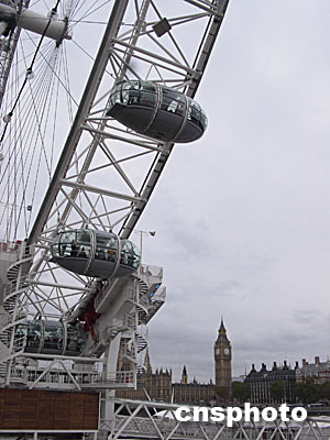 高135米的摩天大轉(zhuǎn)盤“倫敦眼”,是目前世界最大的摩天輪。這座千禧年在倫敦泰晤士河畔矗立起來的目前世界最大摩天輪,每半個(gè)小時(shí)旋轉(zhuǎn)一周。游客可乘坐它在城市中心的上空,俯瞰方圓25英里范圍內(nèi)的倫敦美景。余瑞冬攝