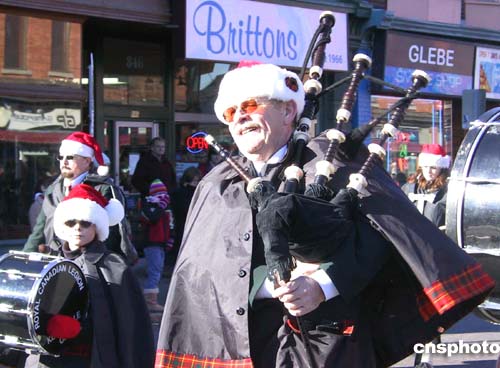圣誕游行隊(duì)伍中的吹奏樂者老少皆有,雖然氣溫在零度以下,但人們熱情不減。作者:蒲力