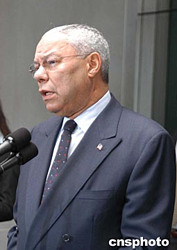 美國國務(wù)卿鮑威爾當(dāng)?shù)貢r(shí)間11月15日宣布辭職,在美國引起巨大反響,人們?yōu)椴际苍诘诙蝺?nèi)失去溫和派的代表聲音感到遺憾。這是鮑威爾最近在美國國務(wù)院門前歡迎中國外長李肇星致辭時(shí)的照片。作者:余東暉