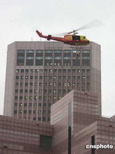 二零零四“亞洲消防首長(zhǎng)協(xié)會(huì)”年會(huì)十一月十七日在臺(tái)北舉行。臺(tái)灣島內(nèi)特搜隊(duì)員表演直升機(jī)滯空下降。作者:董會(huì)峰