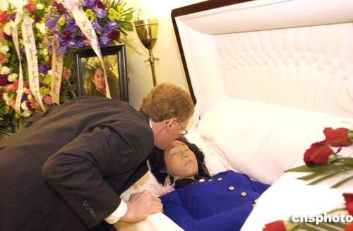 當(dāng)?shù)貢r(shí)間十一月十八日,自殺身亡的美國華裔女作家張純?nèi)邕z體告別儀式在加州洛斯加托斯市的殯儀館舉行,張純?nèi)绲恼煞虻栏窭刮莿e愛妻。作者:陳鋼