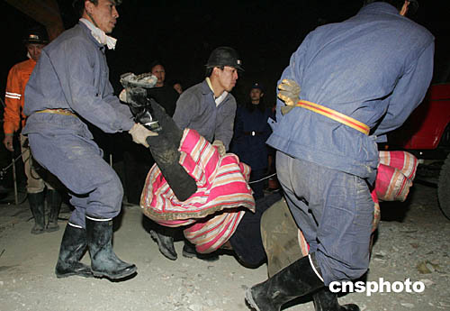 截止二零零四年十一月二十二日十九點(diǎn)三十分,“11.20”河北沙河礦難遇難礦工已達(dá)五十七人,另有三人下落不明。中新社記者:武仲林