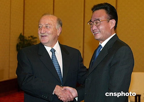 全國人大常委會委員長吳邦國十一月二十三日在北京會見約旦參議長里法伊。中新社記者:滿會喬