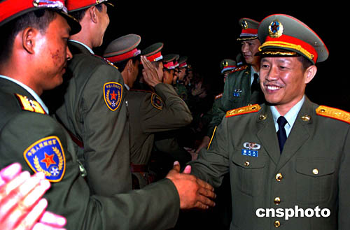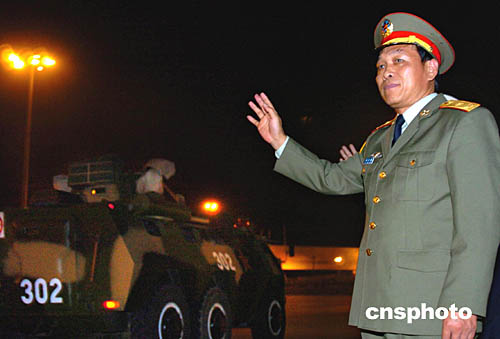 解放軍香港駐軍部隊(duì)副政委李文潮少將,11月25日凌晨在落馬洲口岸歡迎先頭進(jìn)港的輪換部隊(duì)。